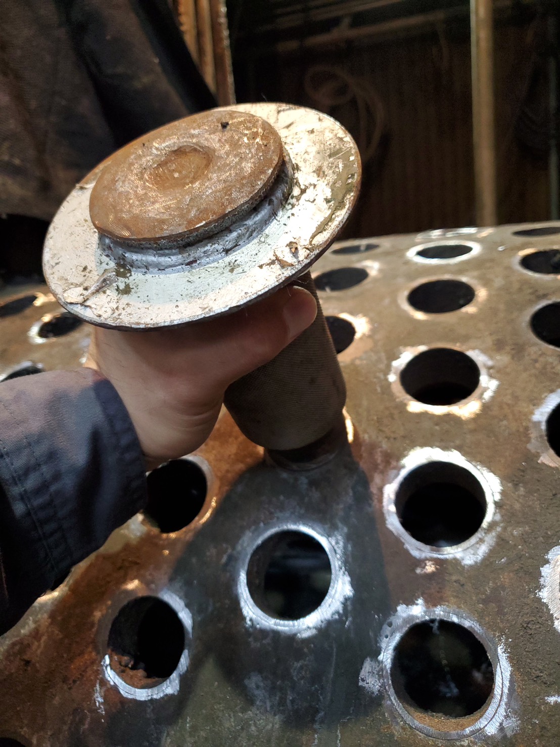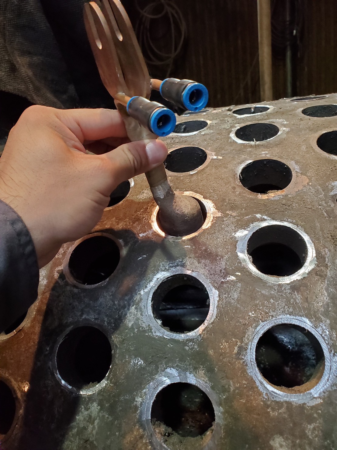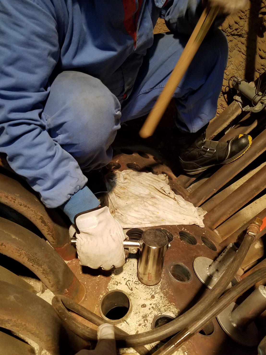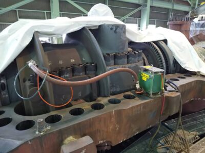従来のボルトヒーター、ガス過熱に比べ、作業性と安全性に優れている高周波ボルトヒーターを使用した施工を行います。弊社で使用している高周波ボルトヒーターでは安全向上、時間短縮は元より、これまでの方式で苦労したボルト作業、チェーンブロック+ハンマーリングよりも確実な施工が可能です。 高周波電源を使用したボルトの締め・ゆるめ作業 弊社の高周波ボルトヒーターは導入も簡単!初めての現場でも下見の上、弊社社員が直接作業します。